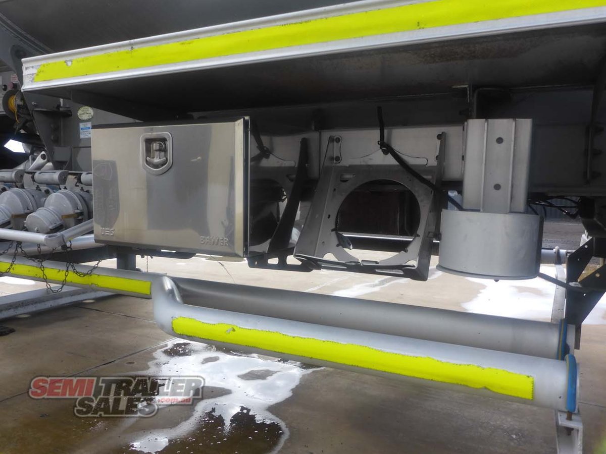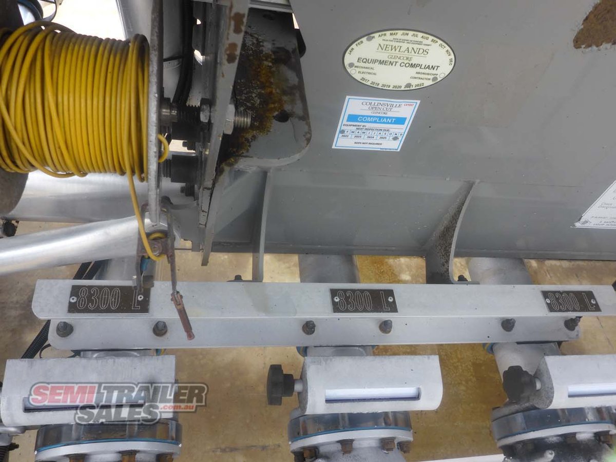 -Tri Axle (Hendrickson) -Airbag Suspension -10 Stud Hubs (Alloys) -11R22.5 Tyres -Led Lights -Toolbox x2 -Bolt In King Pin -Landing Legs (Jost) -Water Tank -LED Work Lights -ABS -Hubodometer -3 Aluminium Compartments -Compartment 1 SFL Capacity 8300L -Compartment 2 SFL Capacity 8300L -Compartment 3 SFL Capacity 8300L -Total Capacity 24,900L